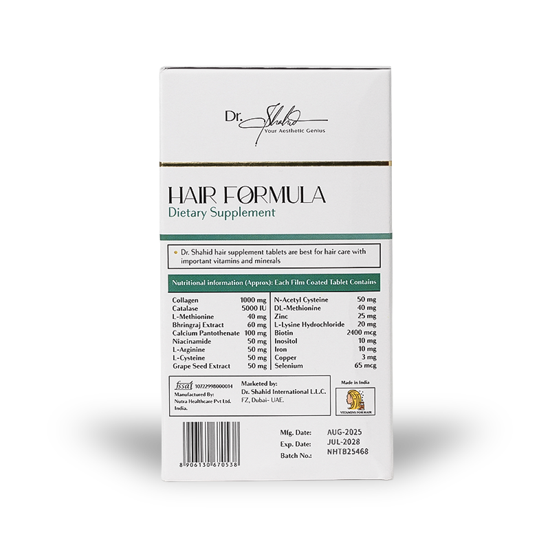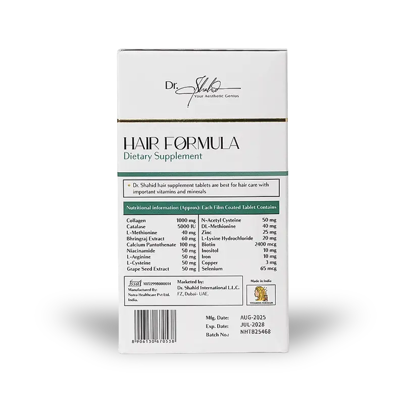 Each tablet brings together medical precision and natural vitality, helping restore volume, texture, and radiance from the inside out. Whether you’re facing thinning, dryness, or premature greying, Hair Formula helps you reclaim healthy, beautiful hair effortlessly.